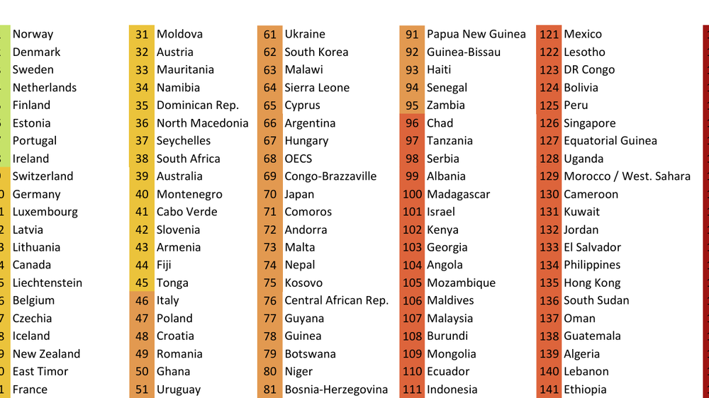 Indeksen viser at det står dårlig til i svært mange land.