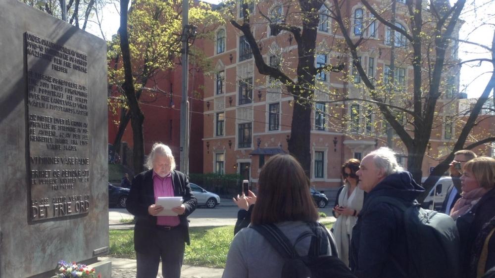Norsk Journalistlag (NJ), Norsk Redaktørforening (NR), Mediebedriftenes Landsforening (MBL), International Press Institute (IPI) og Norsk Presseforbund (NP) inviterte til markering av Pressefrihetens dag 3. mai ved minnesmerket for den illegale presse i Hydroparken ved Solli plass.